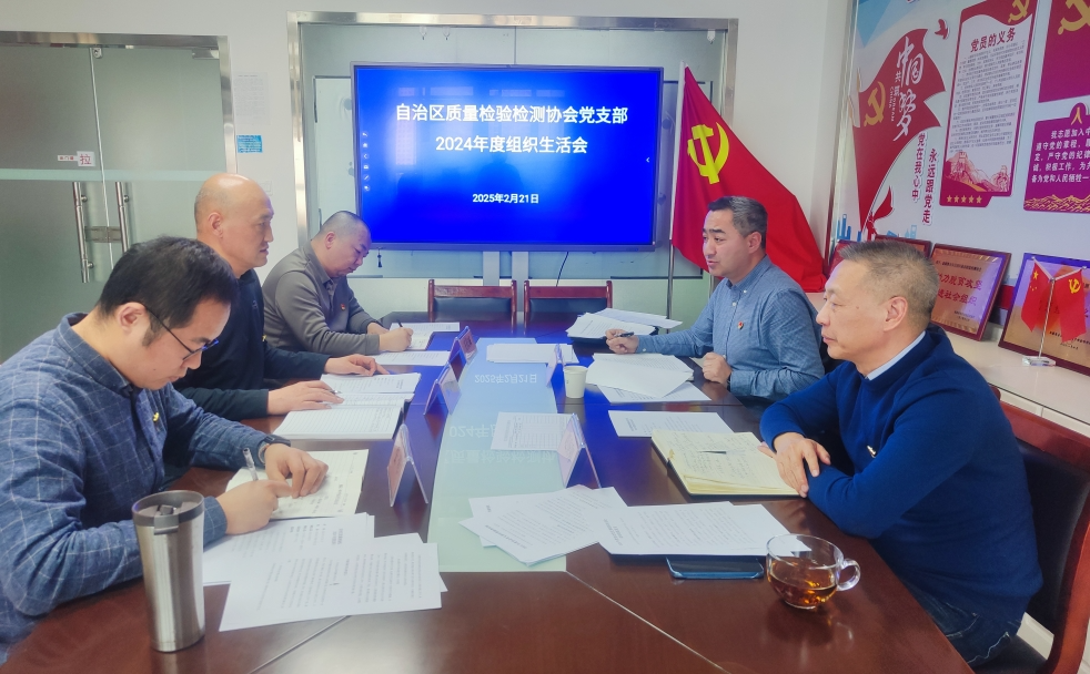 2025年2月21日,新疆维吾尔自治区质量检验检测协会党支部召集党员、预备党员在协会会议室开展了2024年度组织生活会及民主评议党员活动。会议由党支部书记赵庚卯同志主持,自治区市场监督管理局机关党委艾尔肯江·吾甫尔调研员到会指导。